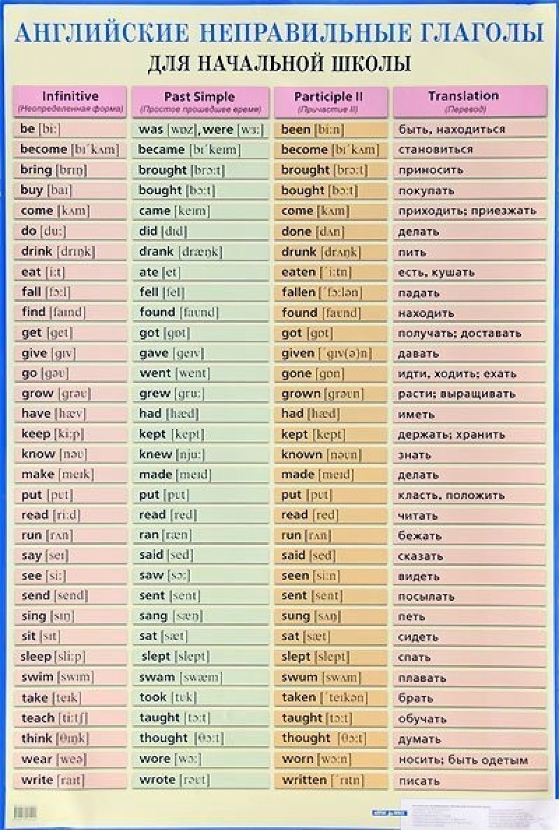 АНГЛИЙСКИЕ НЕПРАВИЛЬНЫЕ ГЛАГОЛЫ ПлакатАНГЛИЙСКИЕ НЕПРАВИЛЬНЫЕ ГЛАГОЛЫ Плакат