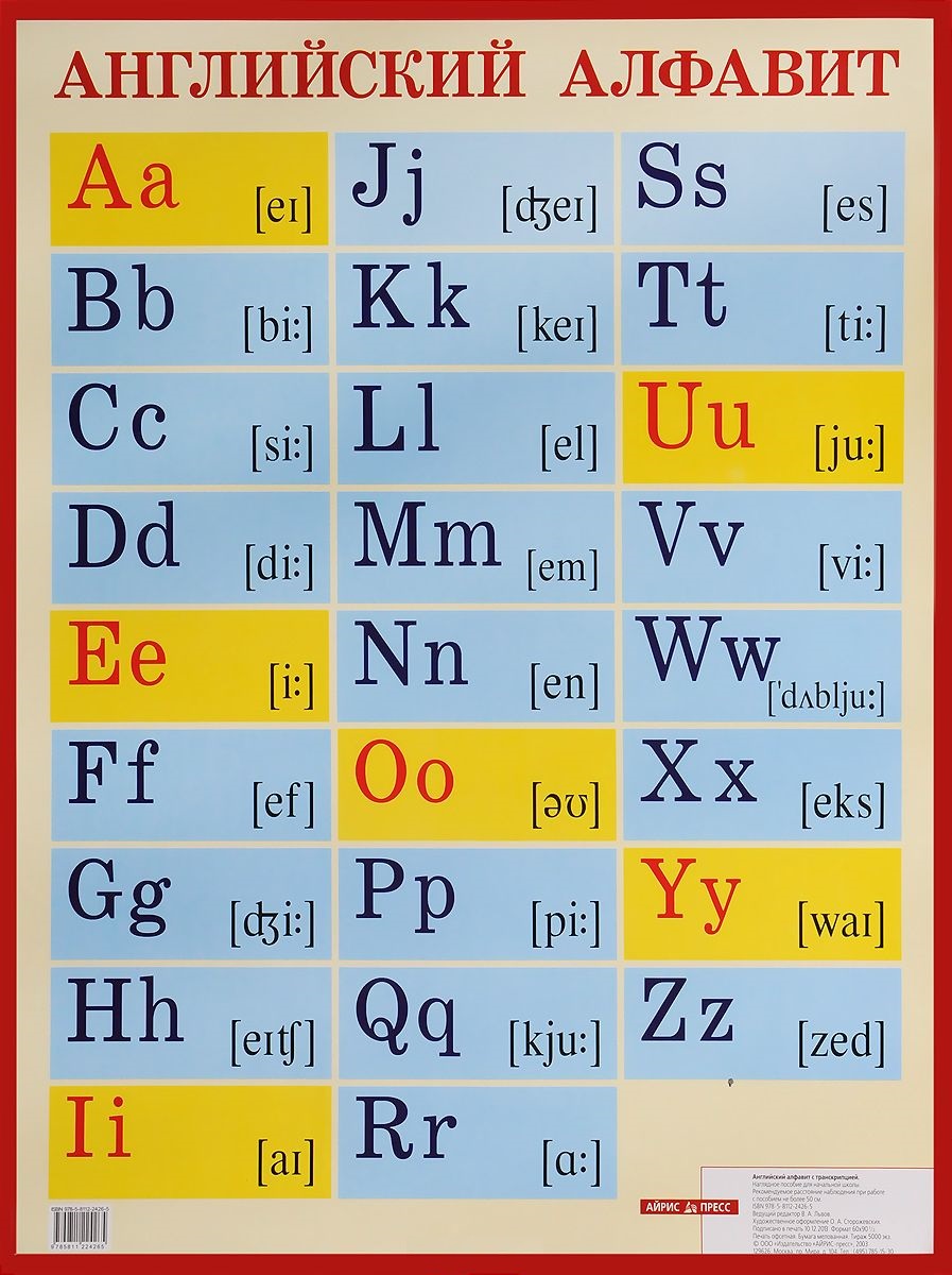 АНГЛИЙСКИЙ АЛФАВИТ С ТРАНСКРИПЦИЕЙ ПлакатАНГЛИЙСКИЙ АЛФАВИТ С ТРАНСКРИПЦИЕЙ Плакат